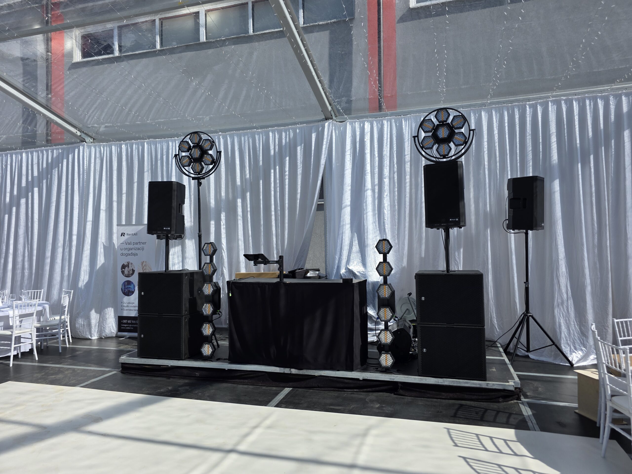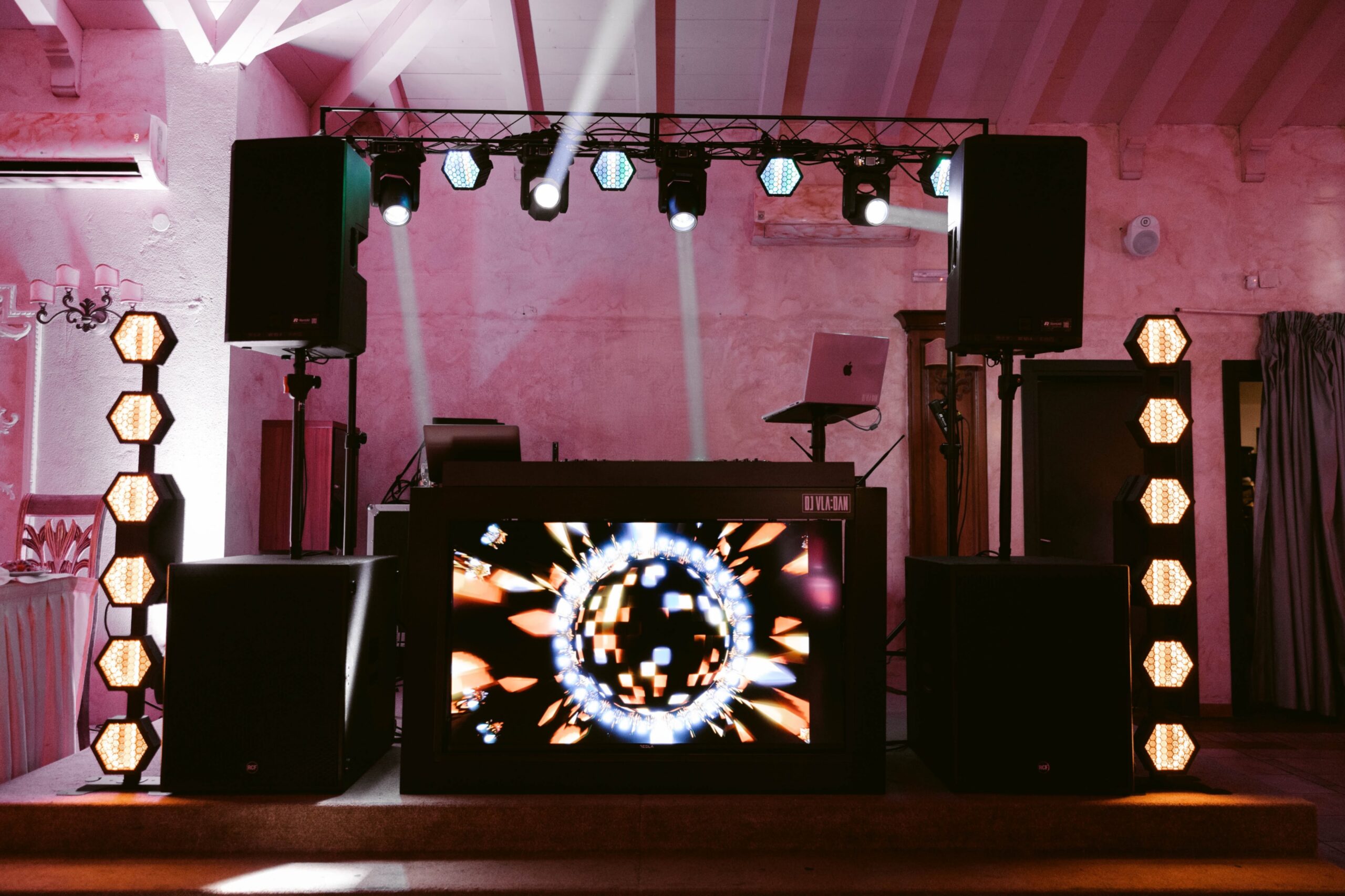 Scensku rasvjetu precizno prilagođavamo tipu događaja i prostoru. U ponudi su dinamični club efekti, beam i moving head rasvjeta za energičnu atmosferu i žurke, kao i ambijentalno osvjetljenje u bojama za elegantne i svečane evente. Svaki setup radimo po mjeri kako bismo postigli savršen vizualni doživljaj.